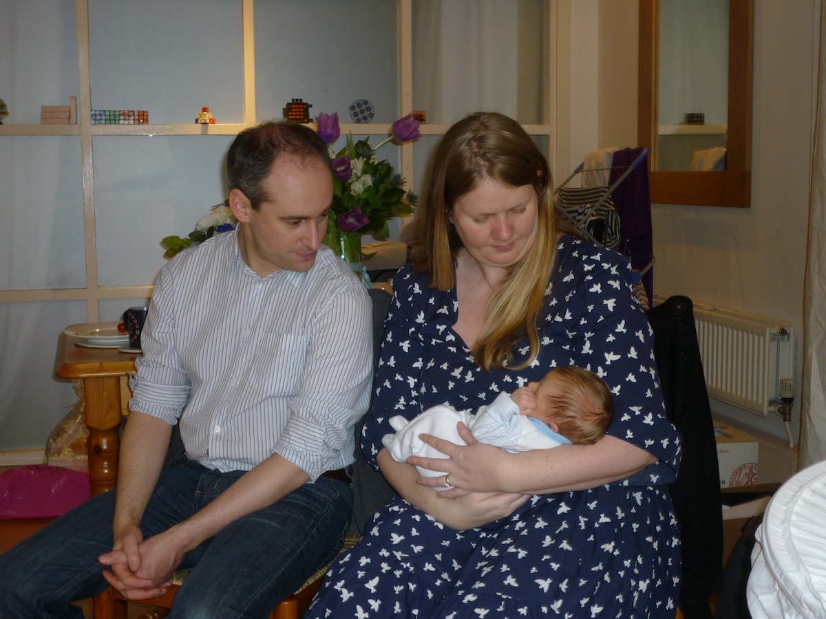 Some of Tim’s university friends popped in today to meet Nicholas. Nicholas’s first big event will be Anne and Andrew’s wedding at the end of April, and Anne and Andrew were relieved to see that he can be a quiet and sleepy baby!