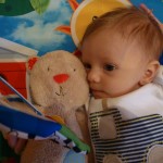 Nicholas still doesn’t sleep very well if he’s not being held, but last night he slept for a whole five hours in his Moses basket (across two separate periods), meaning much better rest for his Mum and Dad! One of the things that seems to calm Nicholas down when in his cot is having his teddy bear to cuddle – or at least to suck on.